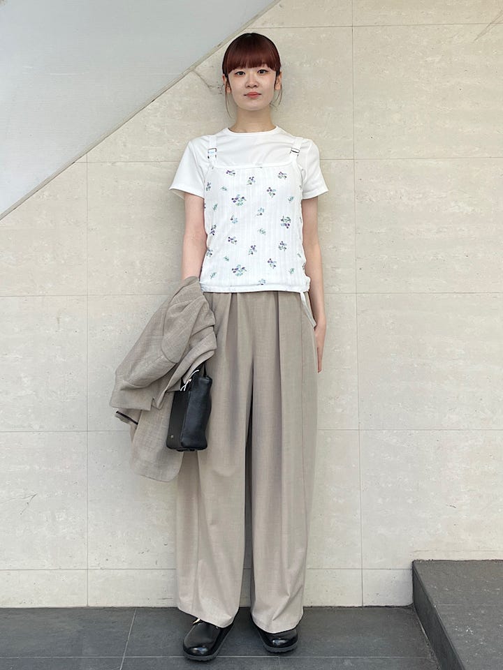 着心地:肩紐で長さの調節可能。伸縮性があるので動きやすいです。コンパクトなトップスとの合わせがおすすめです。