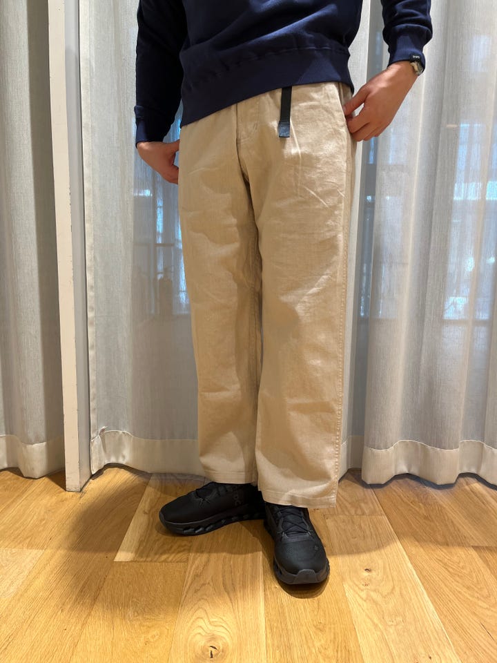 着心地:リネンが入っているので履き心地が軽く真夏でも履いていただけるパンツになっています。
