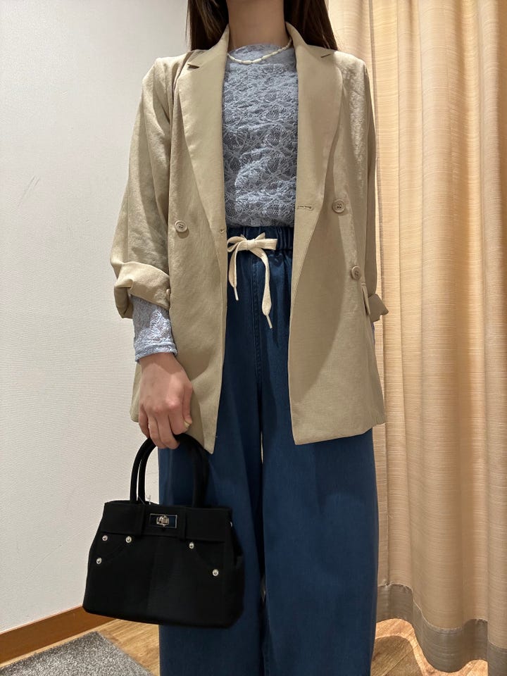 着心地:シアーの透け感が可愛いジャケットです。インナー次第でシーズン長く着用可能です!