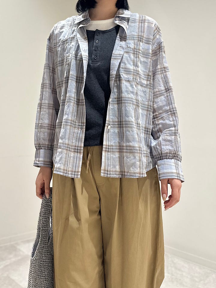 〔ONE SIZE〕SHIPS Colors:〈手洗い可能〉シアー チェック シャツ◇