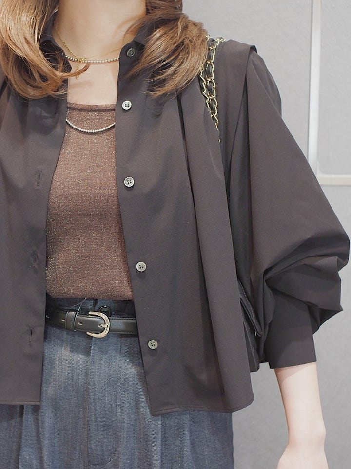 肩のタックや贅沢なギャザーを施し、一枚で着映えするアイテムです。