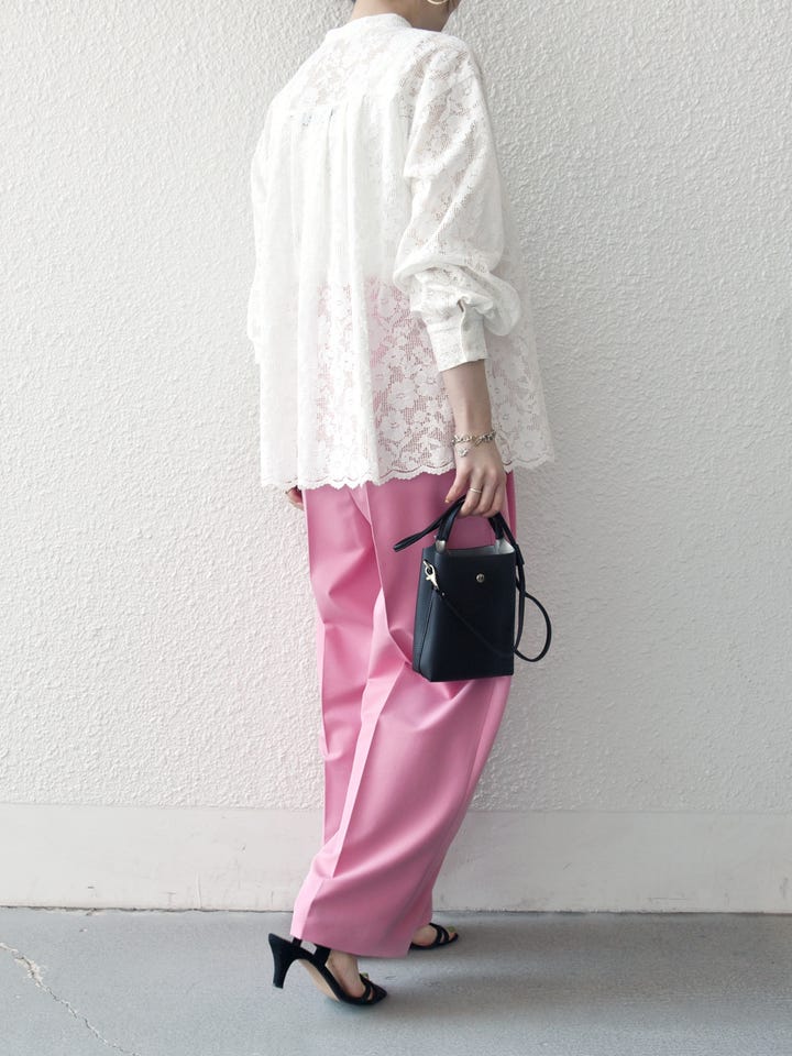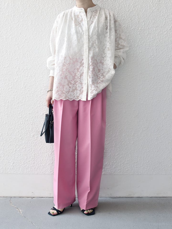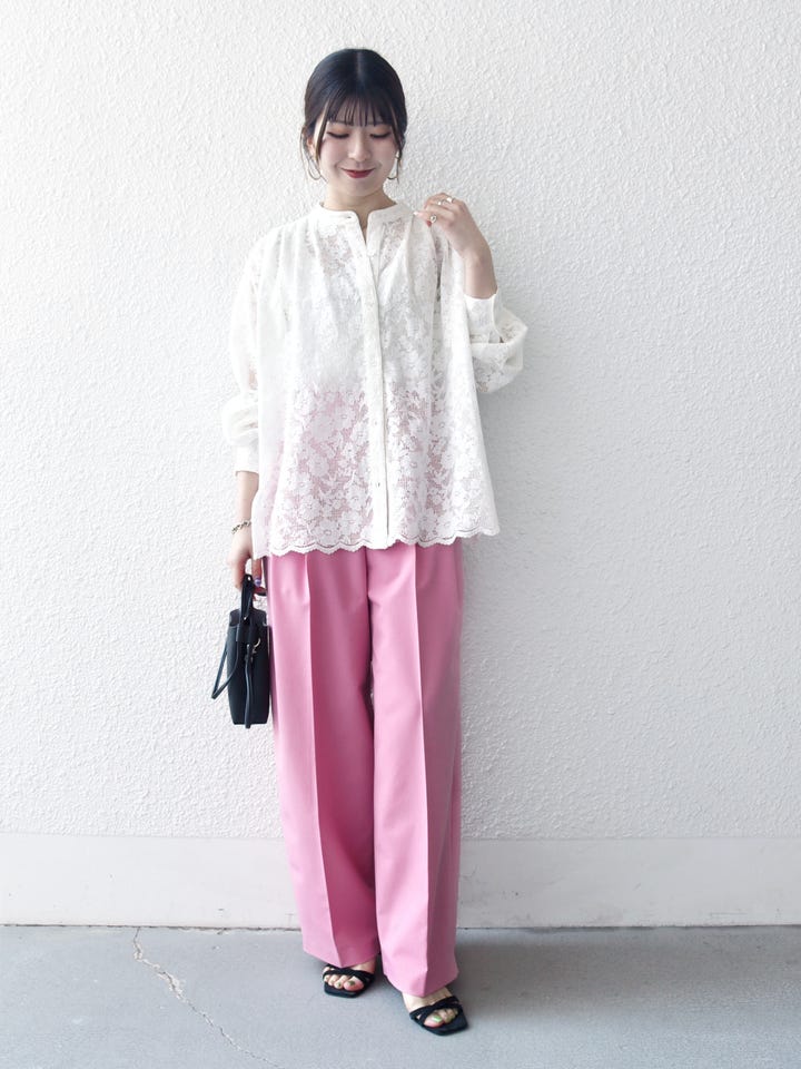 着用アイテム:SHIPS any:〈手洗い可能〉フラワー メッシュ レース バンドカラー タック シャツ