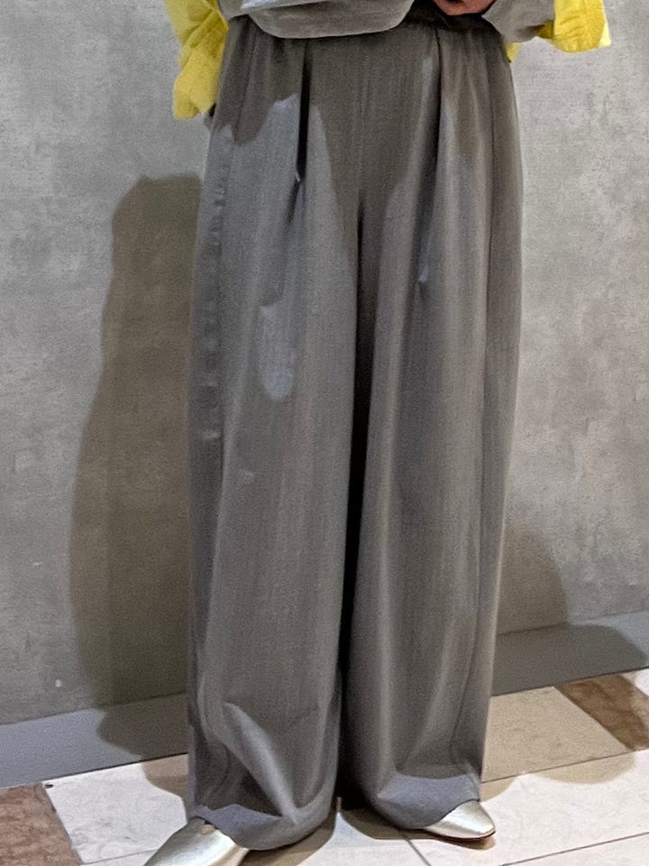 着用感 : ウエストがゴム仕様なので楽です。シルエットもバランスが取りやすい程よくモモ幅もゆったりで生地感もサラッとしています。