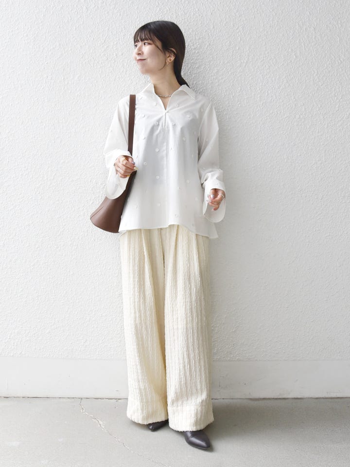 着用アイテム:SHIPS any:〈洗濯機可能〉ウェーブ ジャカード タック ワイド パンツ