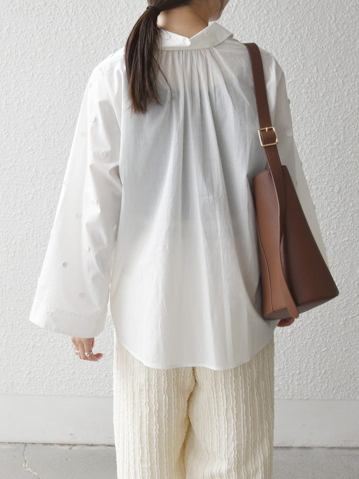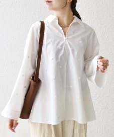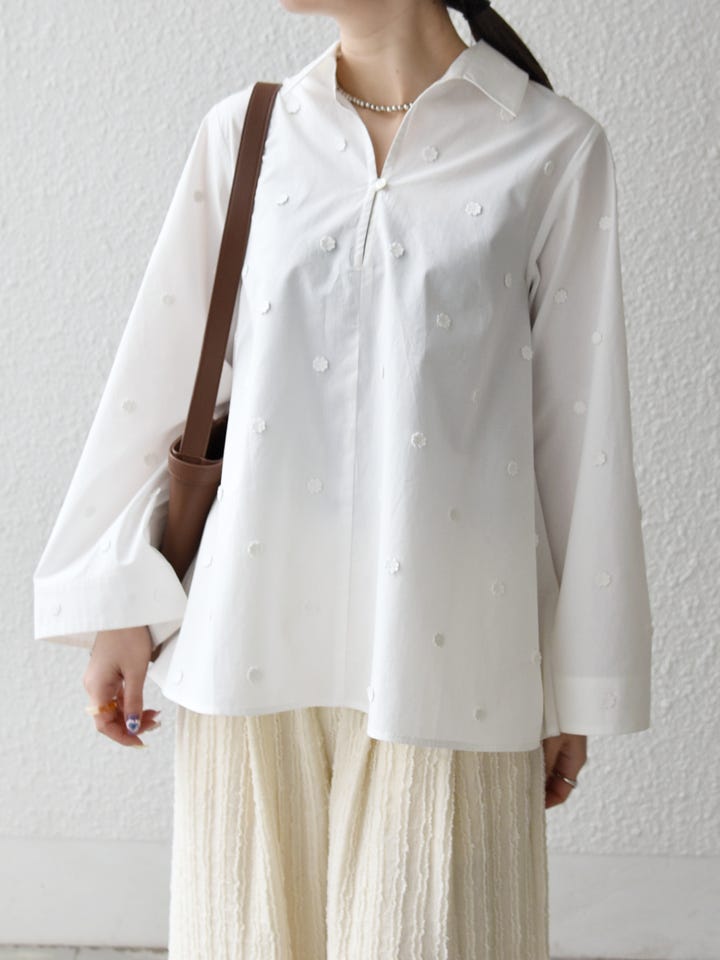 着用アイテム:SHIPS any:〈洗濯機可能〉フラワー モチーフ Aライン スキッパー シャツ ブラウス