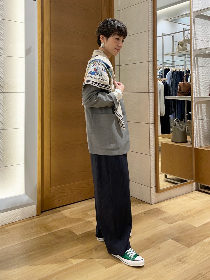 着心地:36でやや小さめの試着です。着丈が長いので安心感あります。