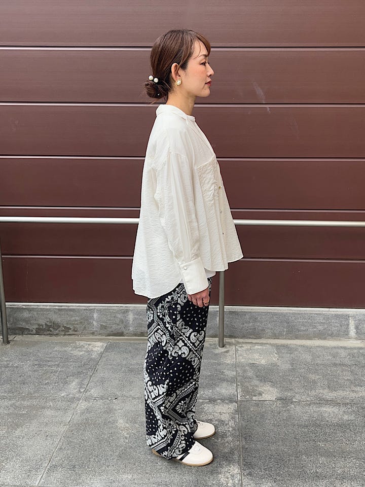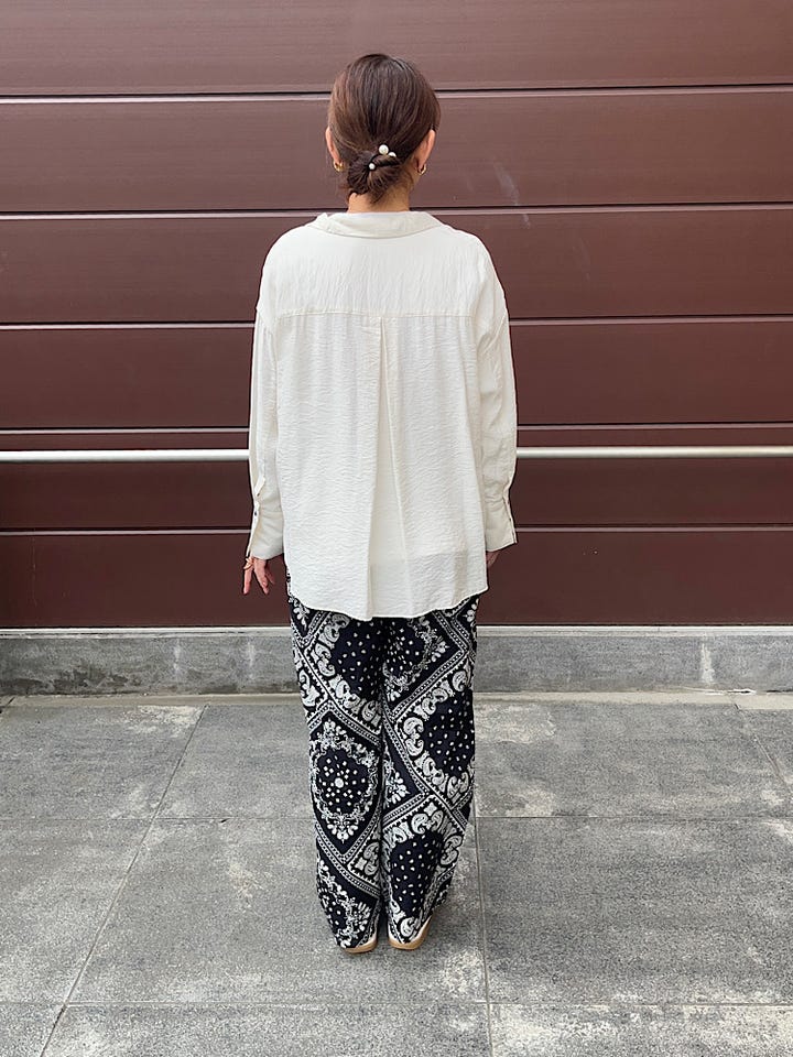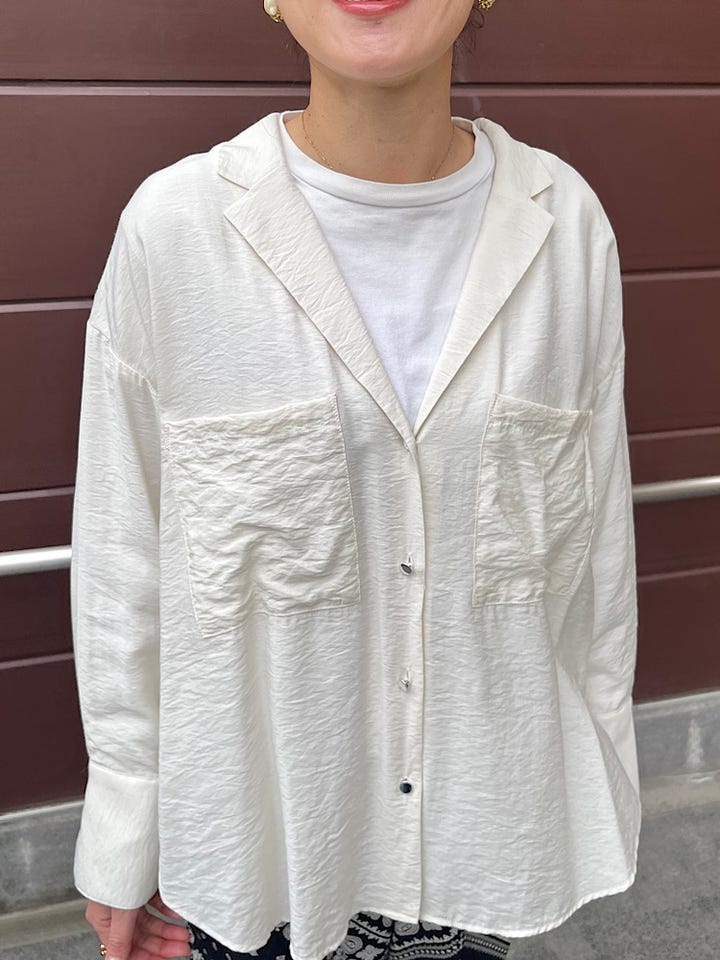 素材感・着心地: さらっとした素材で、軽くて着やすいです。on、off問わず着ていただけ、これからの時期の羽織としても活躍しそうなアイテムです。
