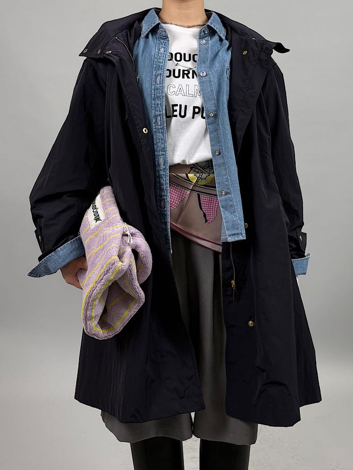 〔ONE SIZE〕〈手洗い可 / 撥水加工 / UVカット〉 スタンドカラー フード コート