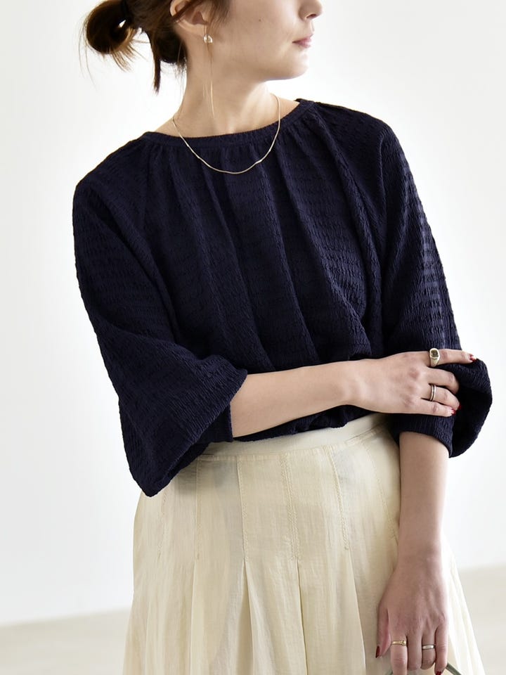 〔ONE SIZE〕quaranciel:〈洗濯機可能〉ジャカード ジャージー クルーネック プルオーバー