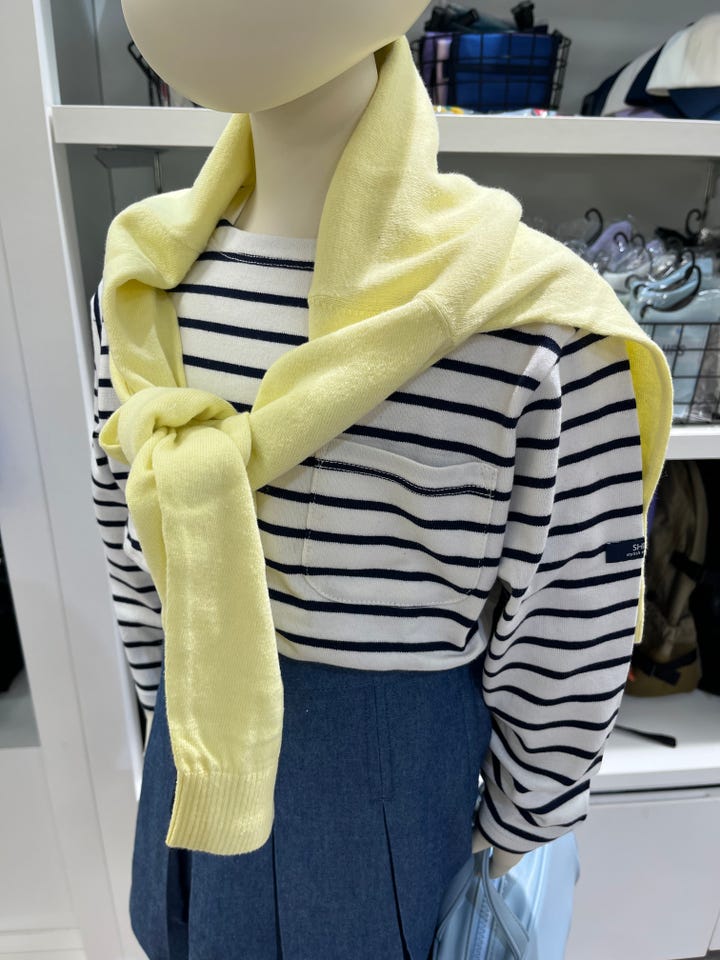 春らしいボーダーTシャツにデニム素材のキュロットをコーディネイトしました。
