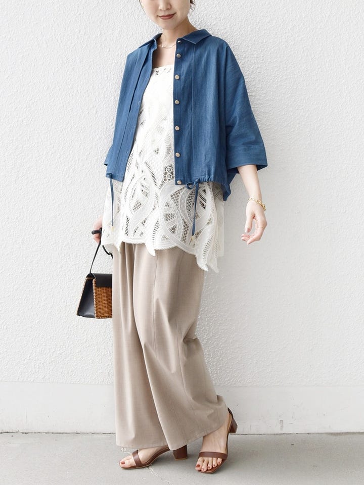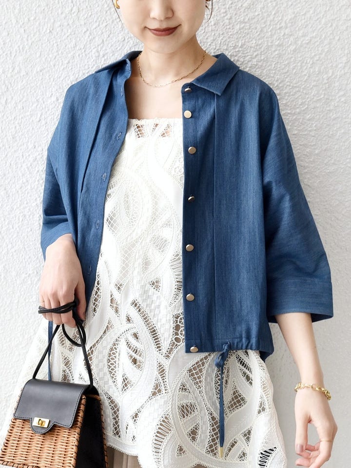 〔ONE SIZE〕《一部追加予約》【WEB限定】〈手洗い可能〉デニム ライク タック 裾 ドロスト 羽織 シャツ