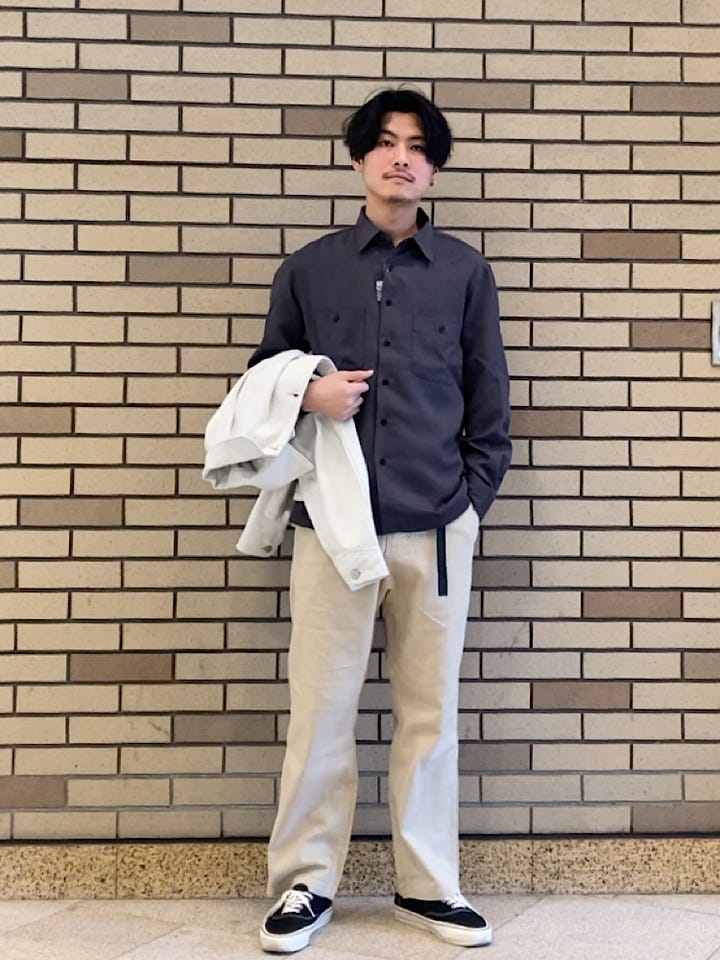 サイズ感:ゆったり目、カジュアルにゆるっと着用できるサイズ感です。