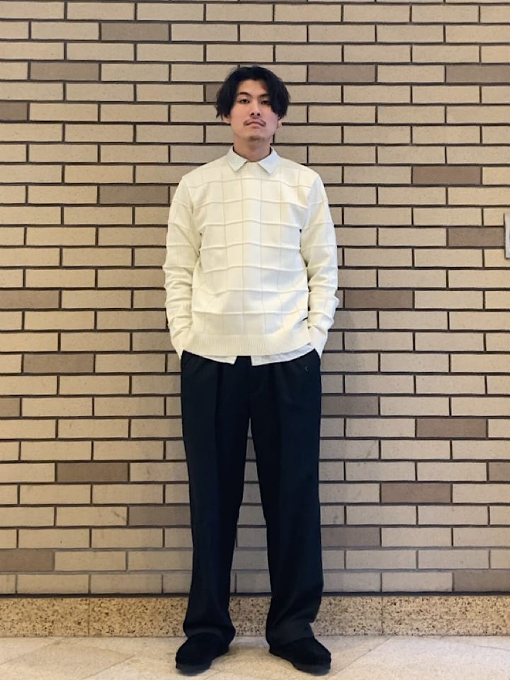 サイズ感:ややゆったり目、カジュアルにも綺麗目にも着用しやすいサイズ感です。