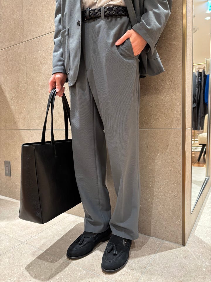 着心地 : 伸縮性があり、着心地が良い。軽量でストレスフリーな着用感。カッチリしすぎず、今のビジネスカジュアルスタイルにおすすめです。