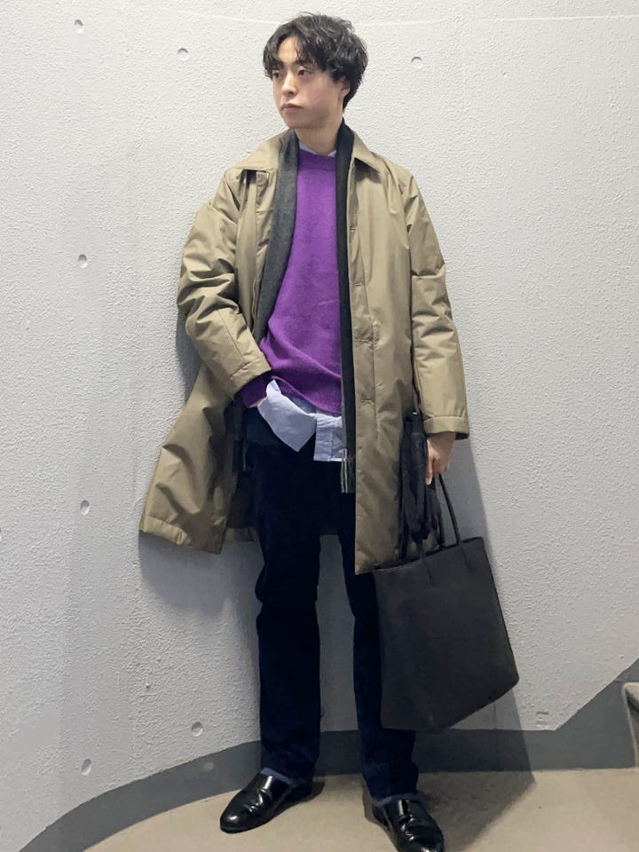 オンオフ兼用で着やすいアウターを使ったスタイリング