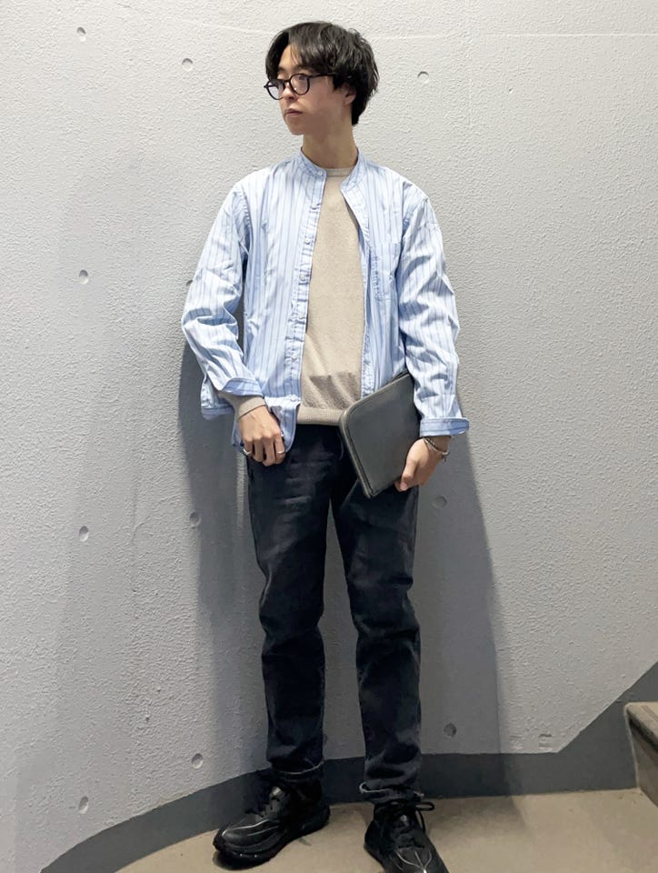 〔MEDIUM〕SHIPS: バンドカラー ブロード シャツ ロングスリーブ