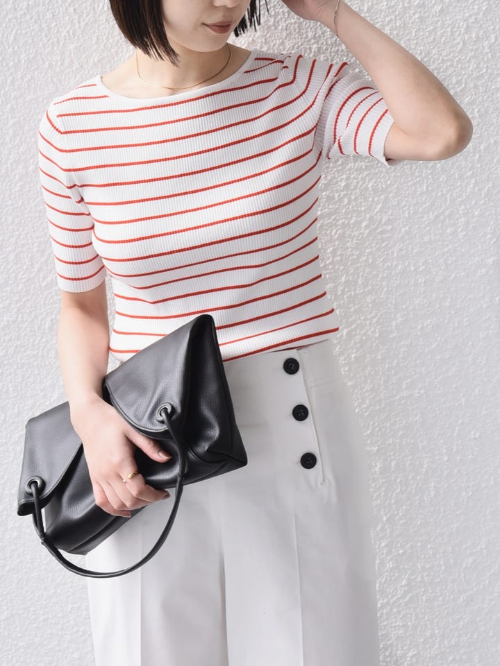 着用アイテム:〈手洗い可能〉リブ 5分袖 ニット◆