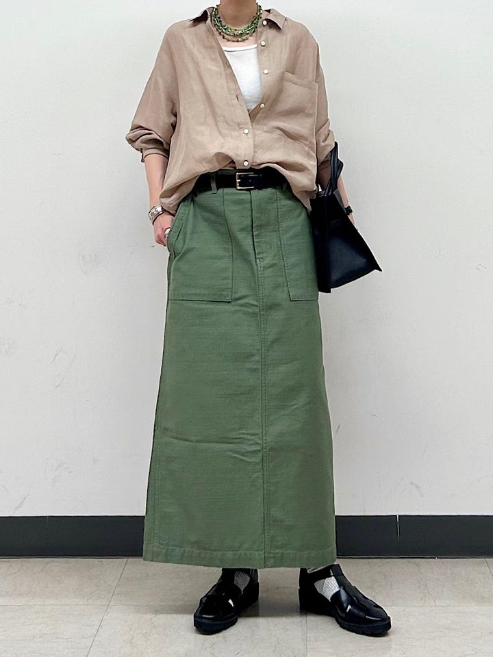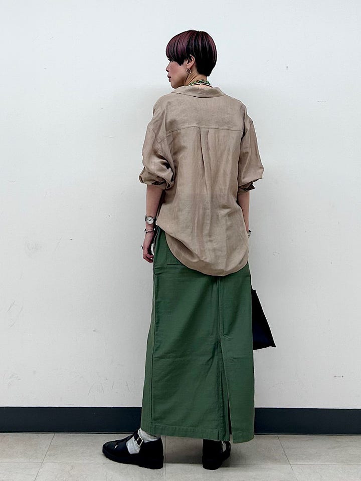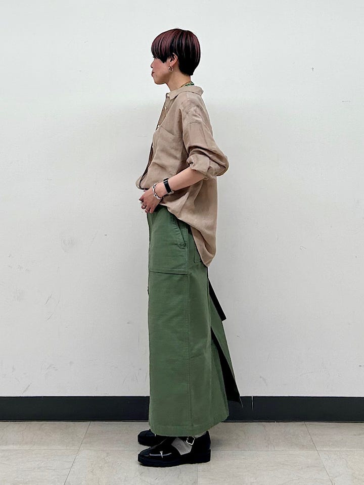 サイズ感:ややゆったり。丈を長くしたかったので、普段よりワンサイズアップで着用していますが、大きすぎることはありませんでした。