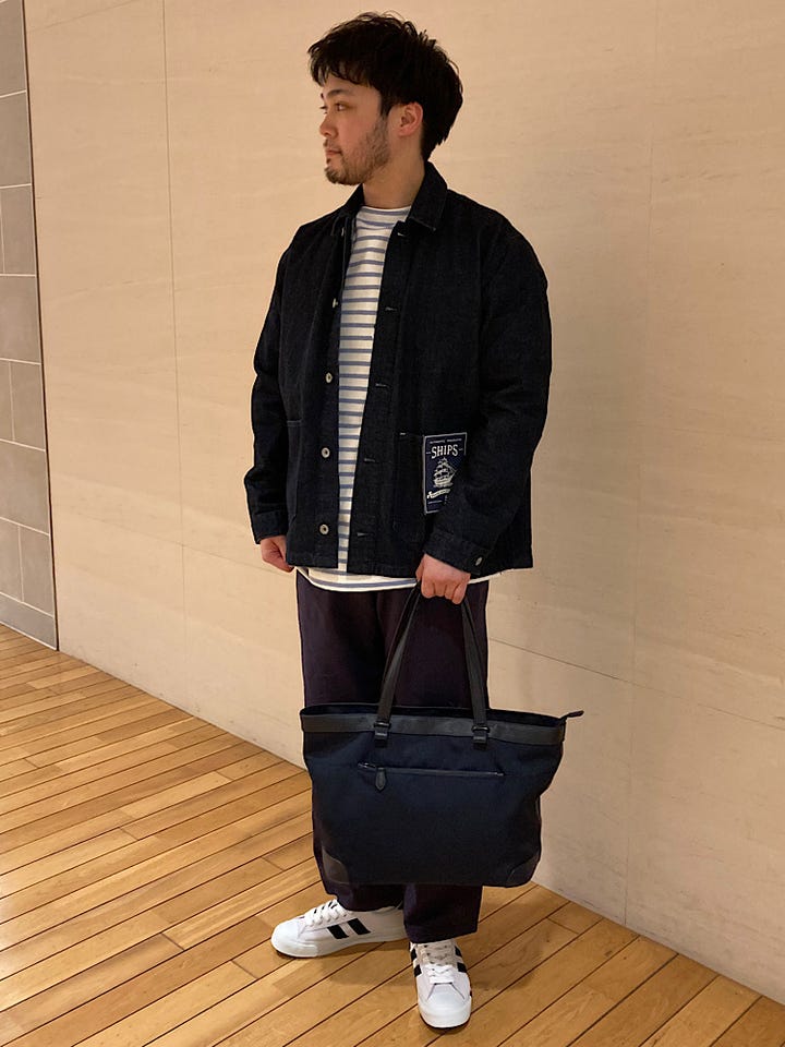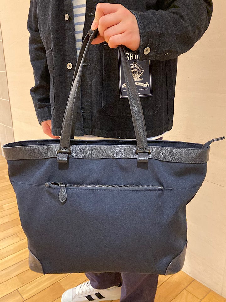 〔ONE SIZE〕SHIPS: シュリンクレザー × ファブリック コンビ トートバッグ