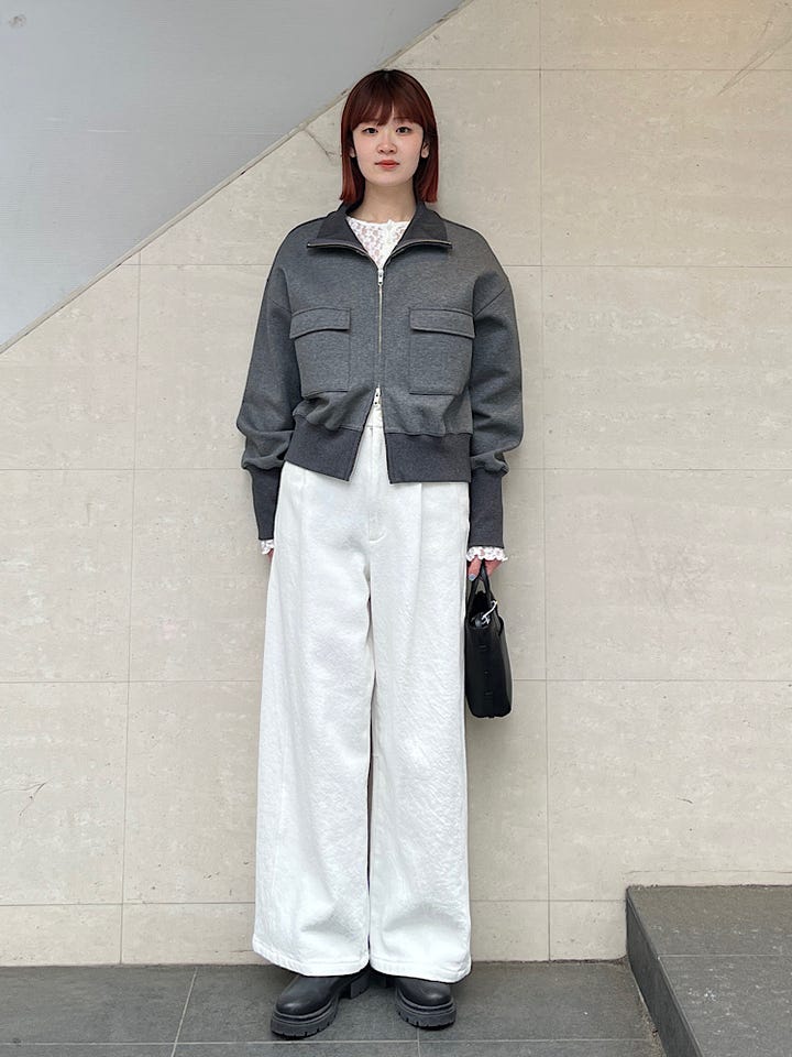 着心地:ダブルジップでシルエットのバランスが取りやすいです。立体的で柔らかい着心地抜群のブルゾン、スウェット感覚でも着用できます。