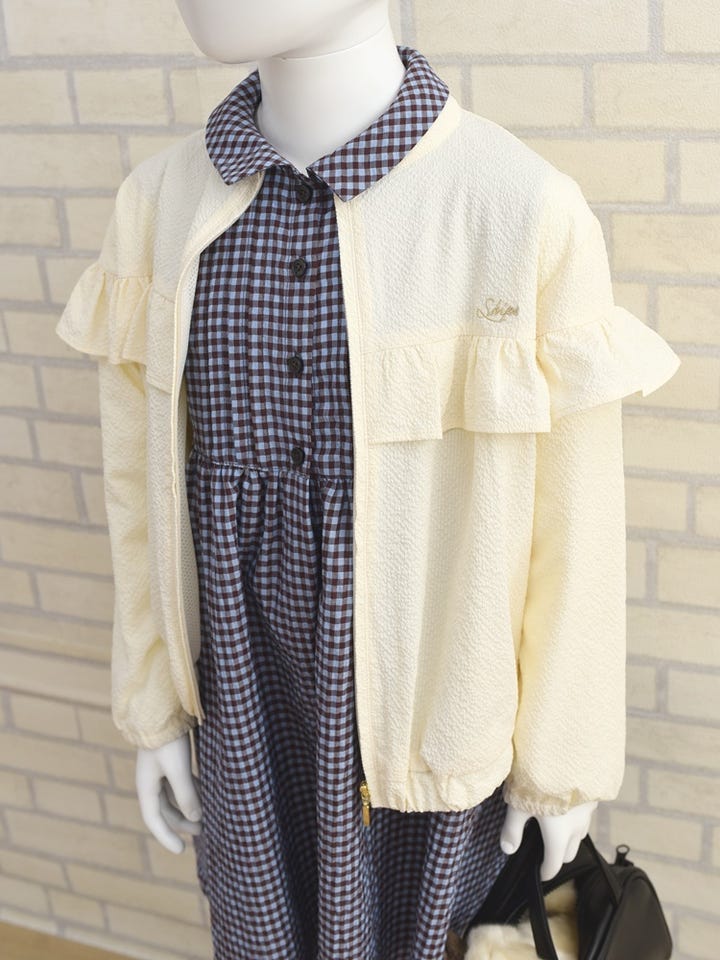 ピンタック加工の襟元と袖のフリルが上品で女の子らしいデザインです♪