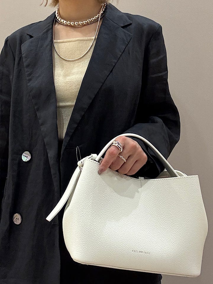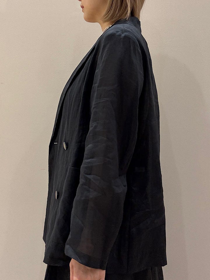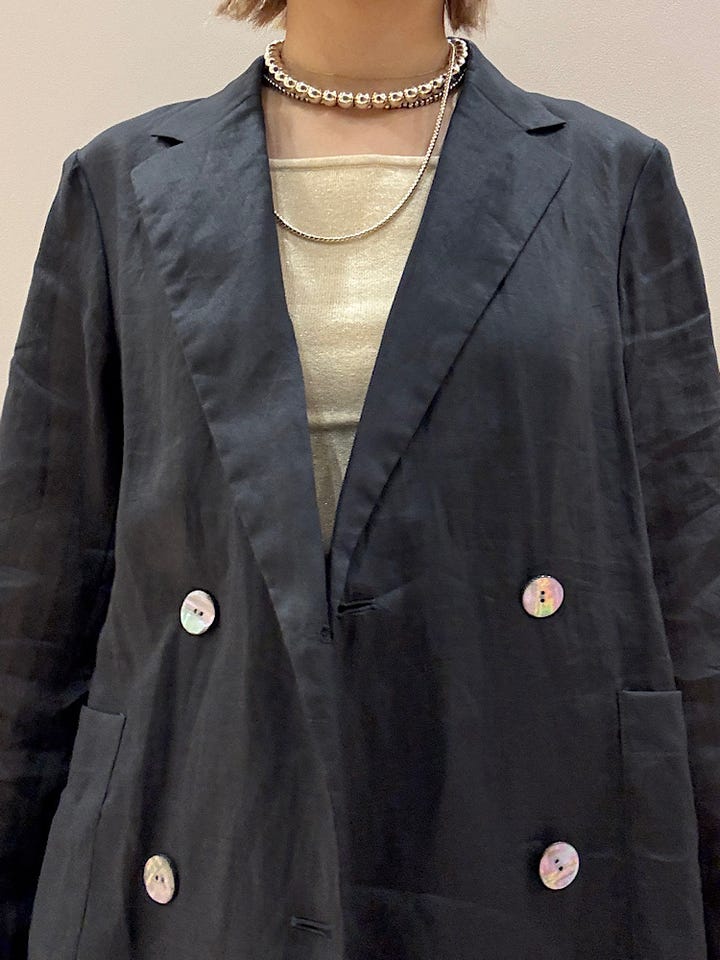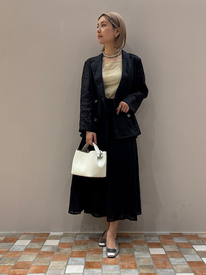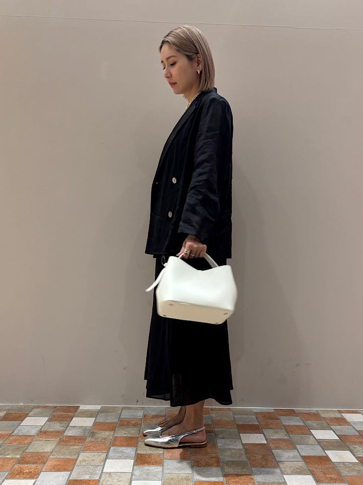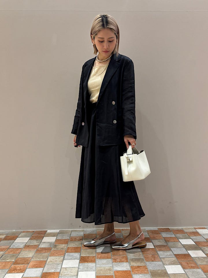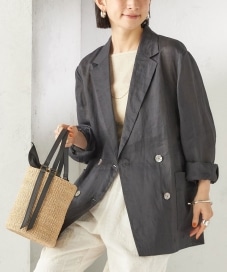 【素材感・着心地】光沢がありシャリ感のある生地。麻生地の自然なシワ感。
