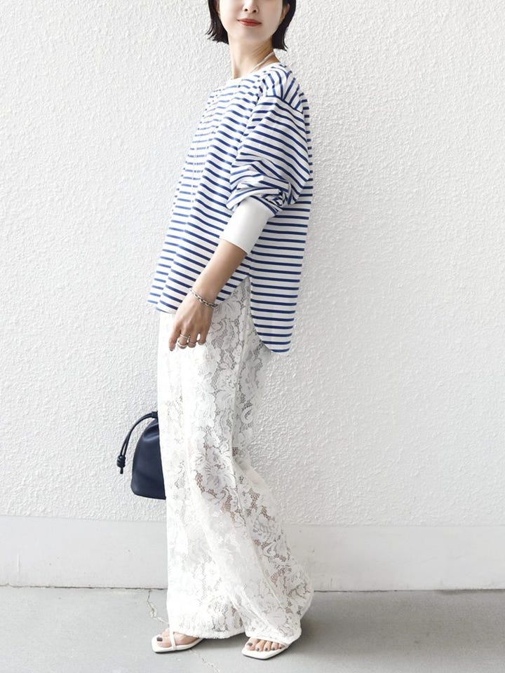 素材感:適度な肉感があるので、透け感を気にせず一枚で着られます。