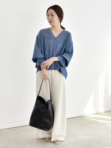 サイズ感:着丈はヒップが隠れる長さ。袖はやや長めで肘が見える長さ。身幅は広くゆったりと着られます。