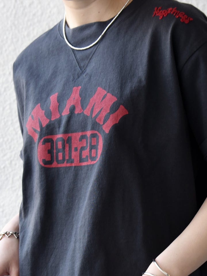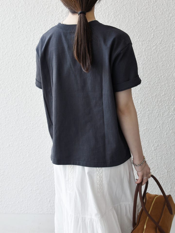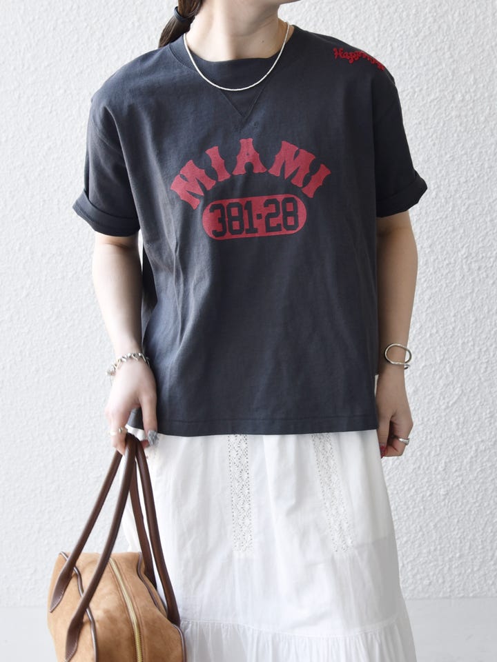着用アイテム:【SHIPS any別注】Collegiate Pacific:〈洗濯機可能〉V ガゼット プリント & 刺繍 Tシャツ