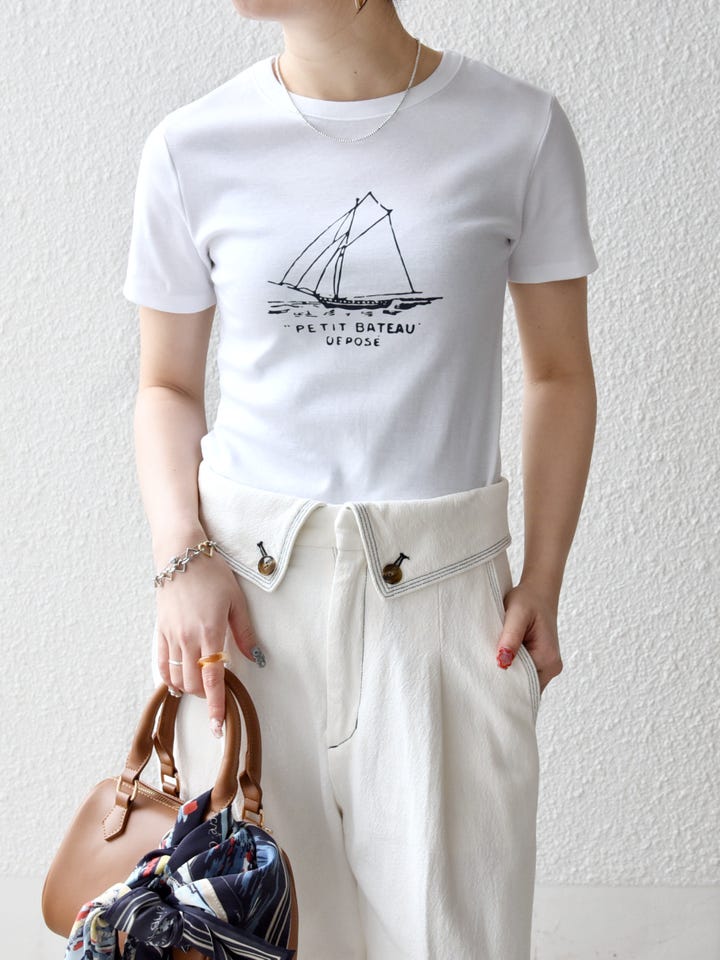 着用アイテム:【SHIPS any別注】PETIT BATEAU: ロゴ プリント コンパクト TEE