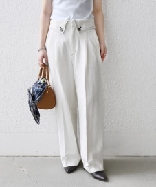 腰回りにデザインがあるので目線を上に持っていってくれて、ワイドでも重たくならないです。