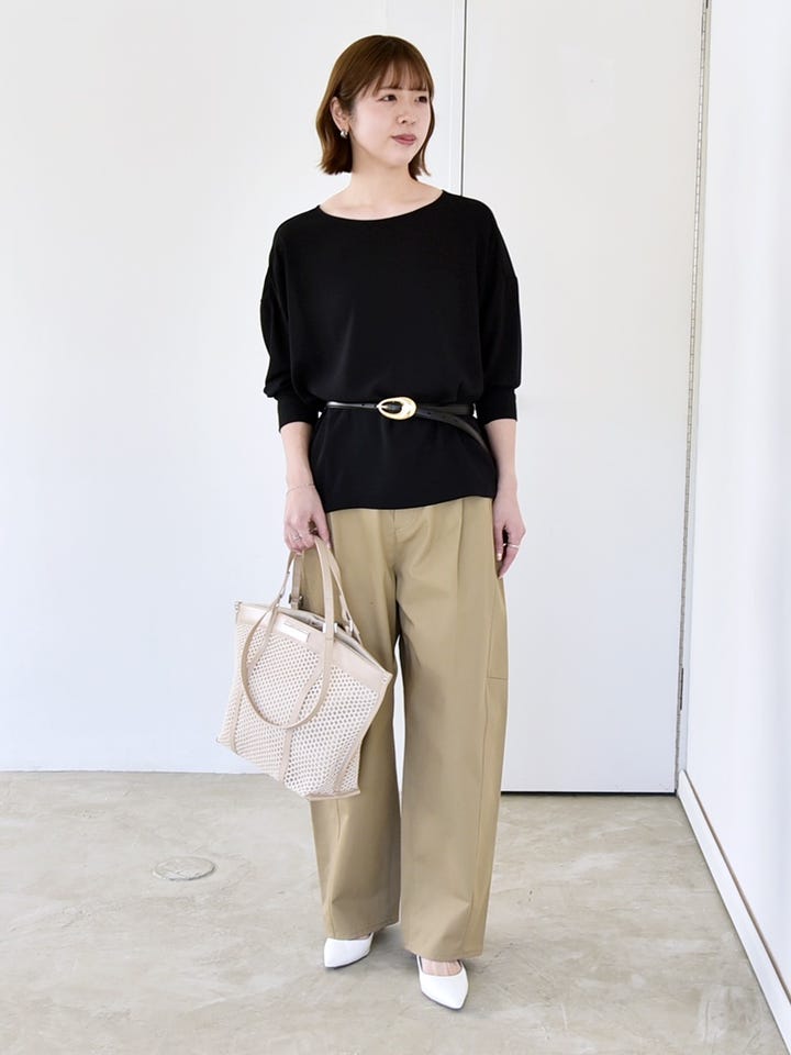 着心地:綿のさっぱりとした生地。ハリ感があるのでキレイめなトップスとも合わせやすいです。