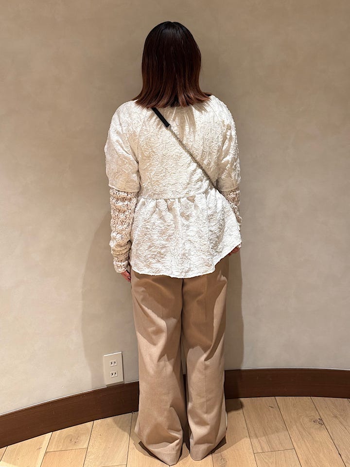 【着心地】シルエットが凄く可愛くて、1枚でも着映えするアイテムです。ボトムスはデニムを合わせてカジュアルにも着て頂けます。