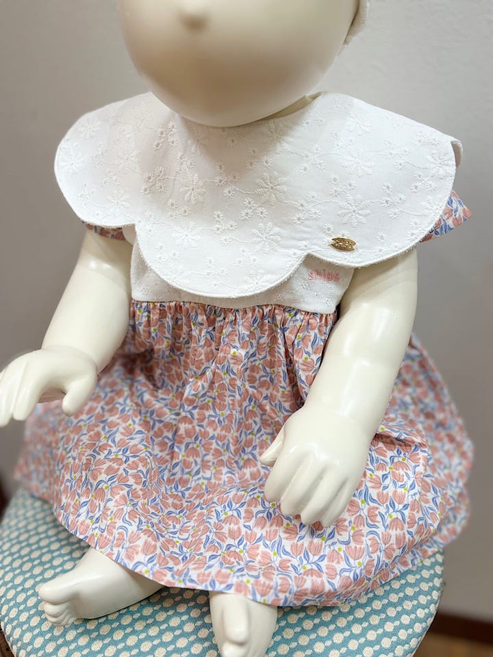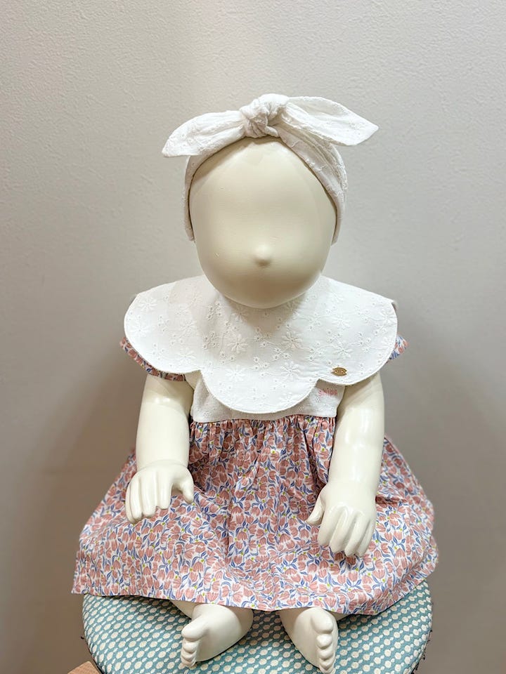 レースの細かい刺繍がかわいい、ギフトにもピッタリのスタイ。
