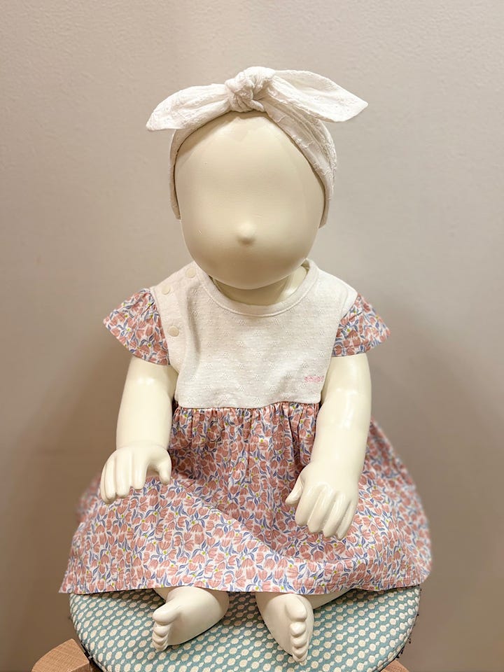 細かいお花の模様がベビーらしいロンパース。