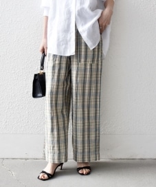 〔36〕SHIPS any:〈洗濯機可能〉リネン ミックス イージー ベイカー パンツ(チェック)