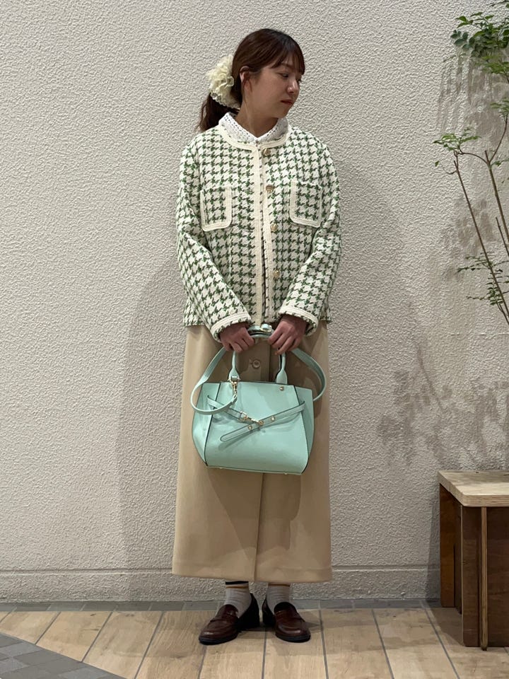 〔ONE SIZE〕SHIPS any: ツイード パイピング ノーカラー ジャケット