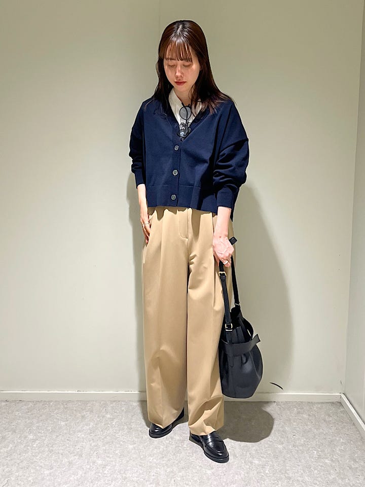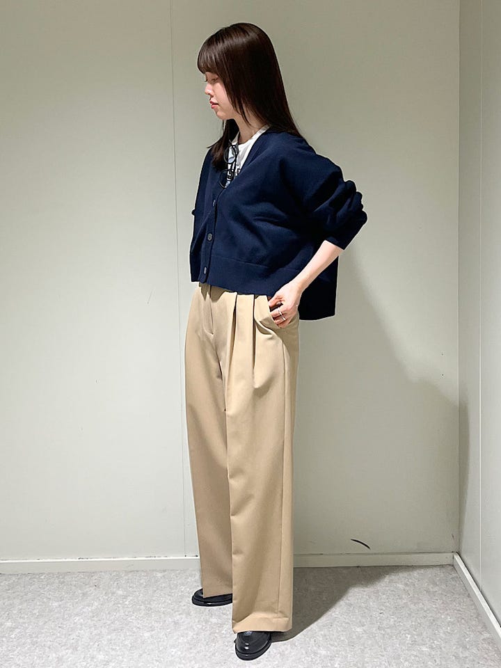 ウエストはジャストですが脚周りはやや太めななワイドパンツです。生地はそこまで厚くないので通年使いやすいです!ベーシックなアイテムなのでオンオフ兼用でいろんなスタイリングに合わせられるのでおすすめです!