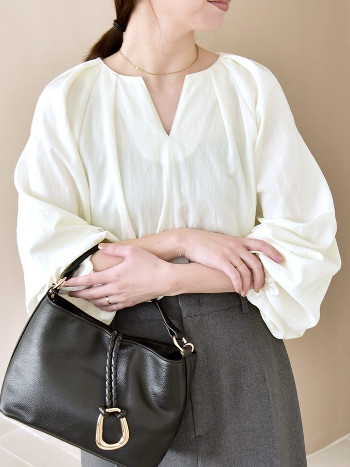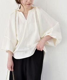 〔ONE SIZE〕quaranciel:〈洗濯機可能〉ツイル スキッパー ボリューム ブラウス