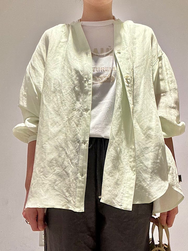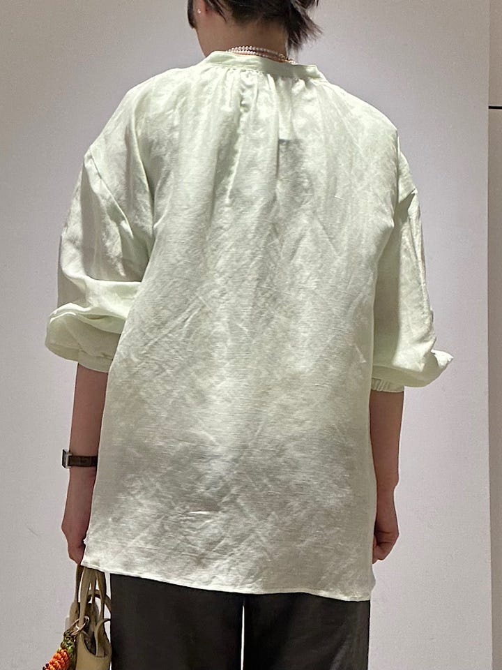 〔ONE SIZE〕《一部追加予約》〈手洗い可能〉IMPERIAL LINEN 混 バンドカラー スキッパー シャツ