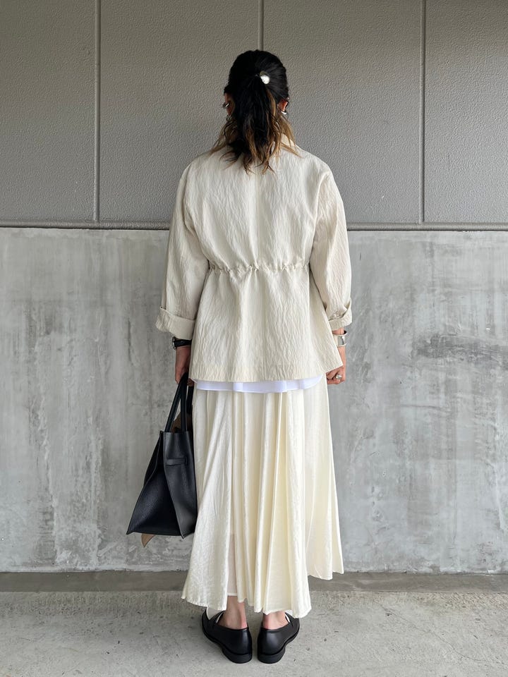 フロントの切り替えと後ろ姿も印象的なギャザー