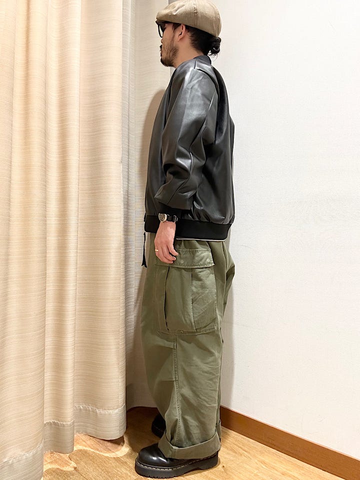 着用アイテム:フェイクレザーMA-1タイプジャケット