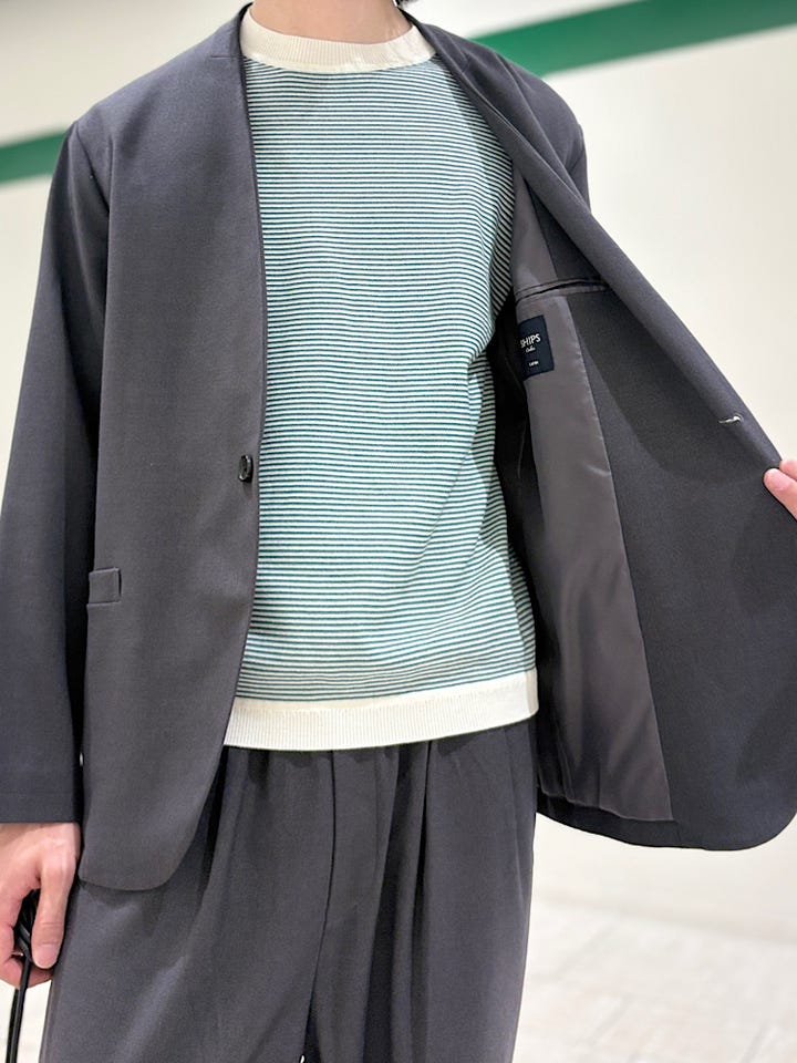 〔LARGE〕SHIPS Colors:〈手洗い可能〉TR ノーカラー ジャケット(セットアップ可能)◇