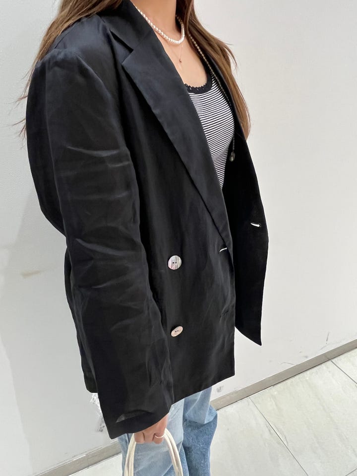 着心地:ラミー素材のジャケットで軽く、夏は涼しく着ていただけます。カジュアルでもフォーマルでもどちらでも着ていただけるので夏は大活躍しそうです◎