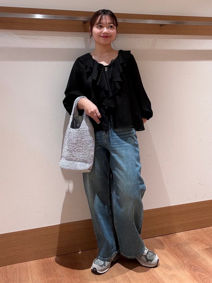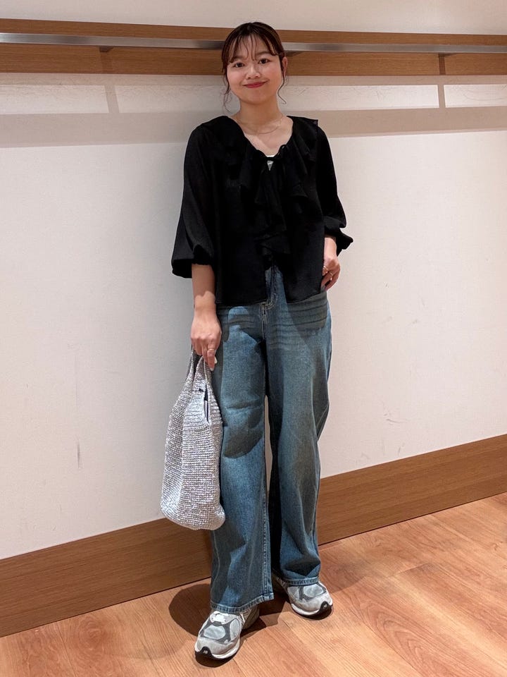 可愛くなりすぎない大人っぽフリルブラウス。タンクトップでヘルシーに、インナーにロゴTシャツ合わせでカジュアルに着ても可愛いです!