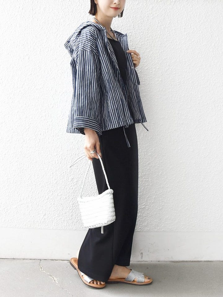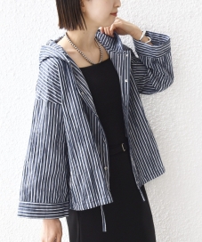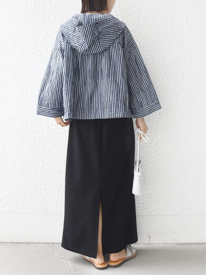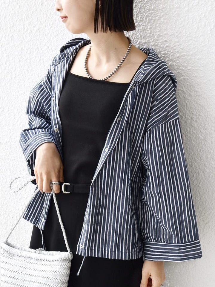 〔ONE SIZE〕【WEB限定】〈手洗い可能〉ストライプ フード 羽織り シャツ