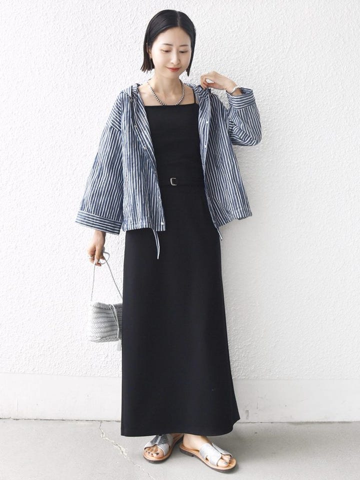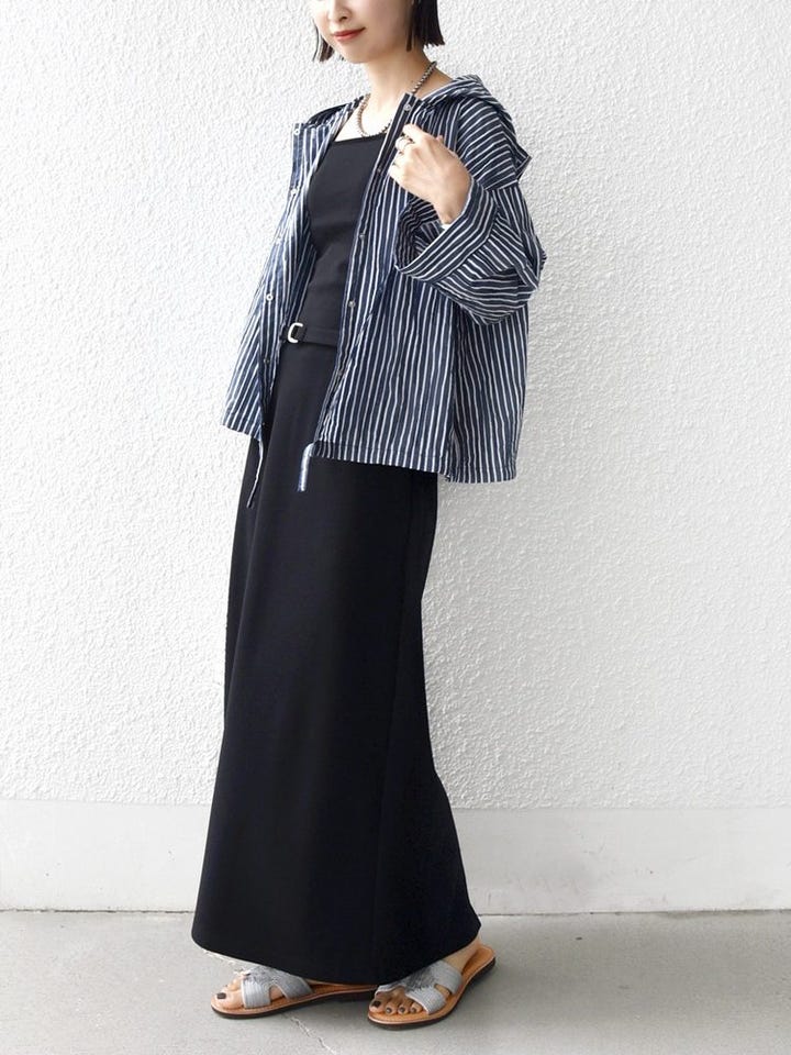 サイズ感:ウエストからヒップにかけて程よくフィットするジャストなサイズ感です。着丈はくるぶしくらいの長さです。