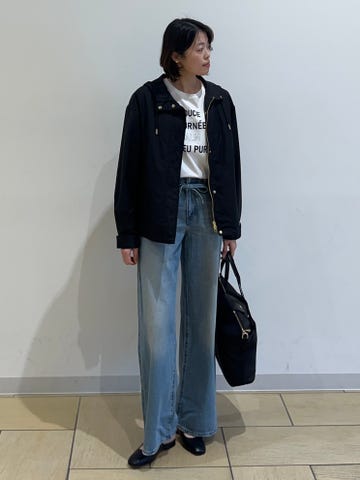 サイズ感:全体的にゆとりがあり、着丈はヒップにかかるくらいの長さ。裾のドロストを絞ることで、好みの丈感や丸みのあるシルエットに調整可能です。