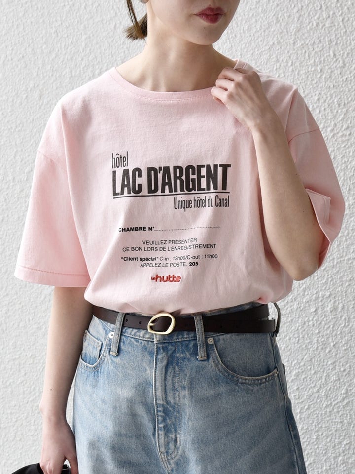着用アイテム:【SHIPS any別注】La Hutte:〈洗濯機可能〉デザイン ロゴ プリント TEE 26SS ピンク