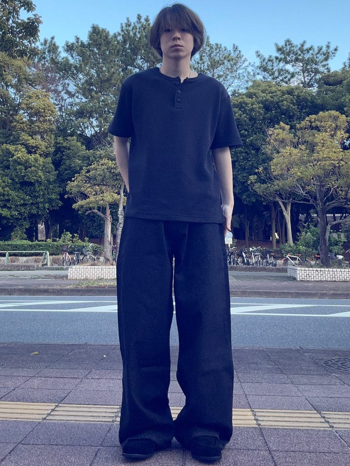 着用アイテム:ローゲージ カノコ ヘンリーネックTシャツ